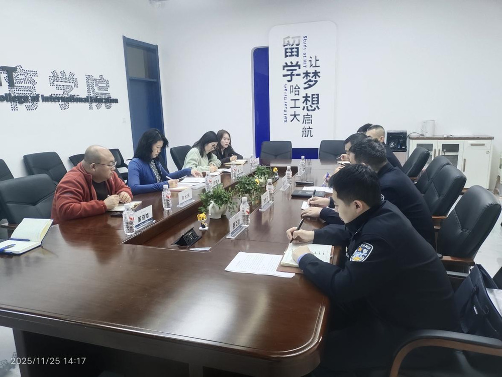 (董曉旭/文)為深化校警聯動機制,精準對接涉外服務需求,助推學校國際化教育高質量發(fā)展,11月25日,哈爾濱市公安局出入境管理局局長趙洪偉一行到訪我校國際教育學院開展交流,會議由國際教育學院院長趙異肖主持,國際教育學院相關人員參會。To deepen the campus-police collaboration mechanism, precisely addressforeign-related service demands, and boost the high-quality development of the university’s international education, on November 25, a delegation led by Zhao Hongwei, Director of the Exit-Entry Administration Bureau of Harbin Public Security Bureau, paid a visit tothe Collegeof International Education(CIE)of HIT.